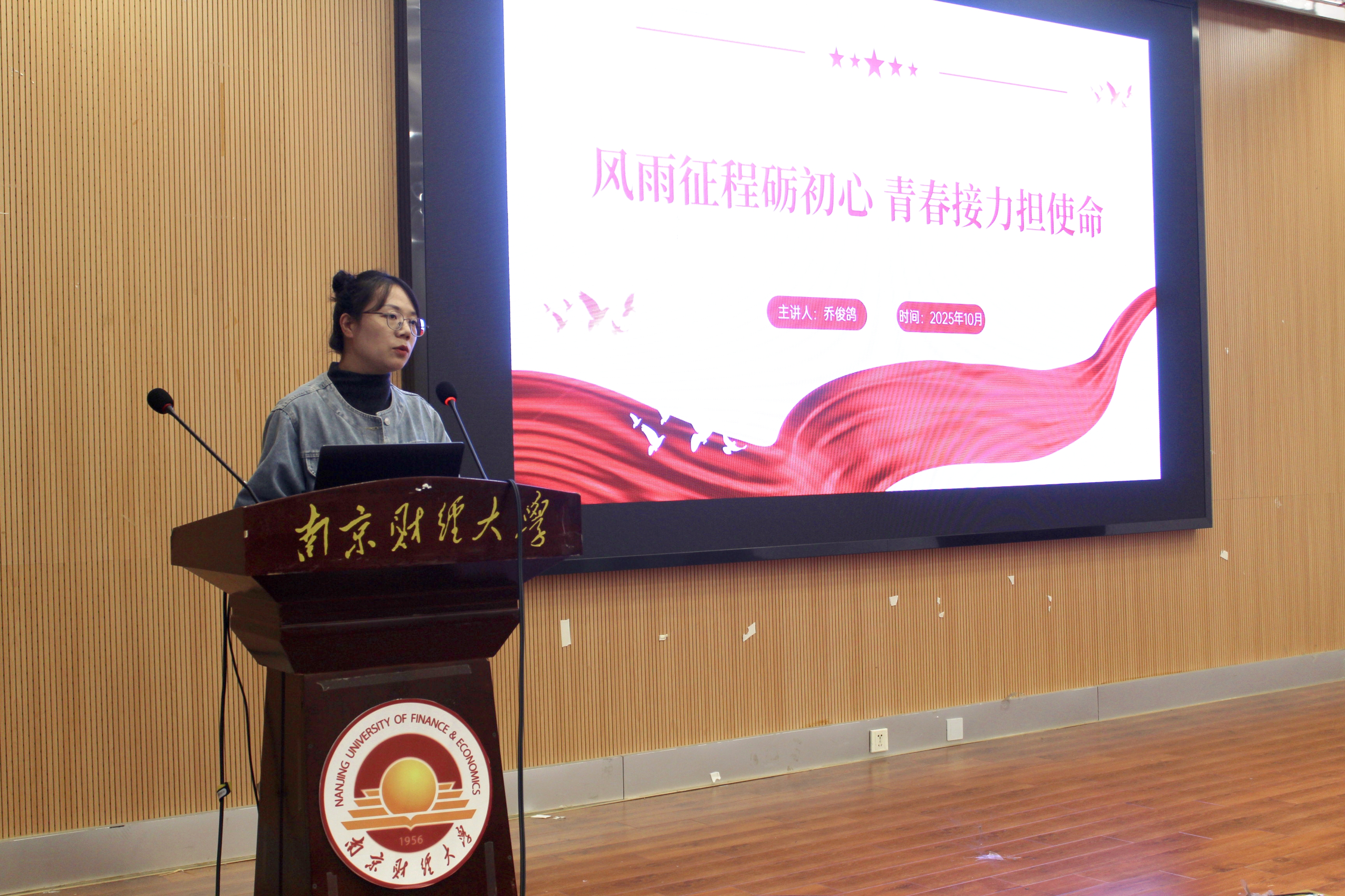 2025—2026学年第一学期新学员代表娄天悦同学作表态发言。她表达了青马班是学习马克思主义理论、坚定理想信念的宝贵平台,承诺将以饱满热情投入学习,提升政治素养,力争在思想和行动上向优秀学员看齐。